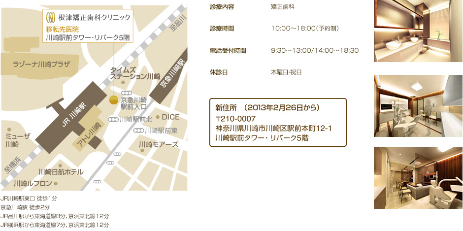 根津矯正歯科クリニックは、2013年2月26日に川崎駅前タワー・リバーク5階に移転いたしました。